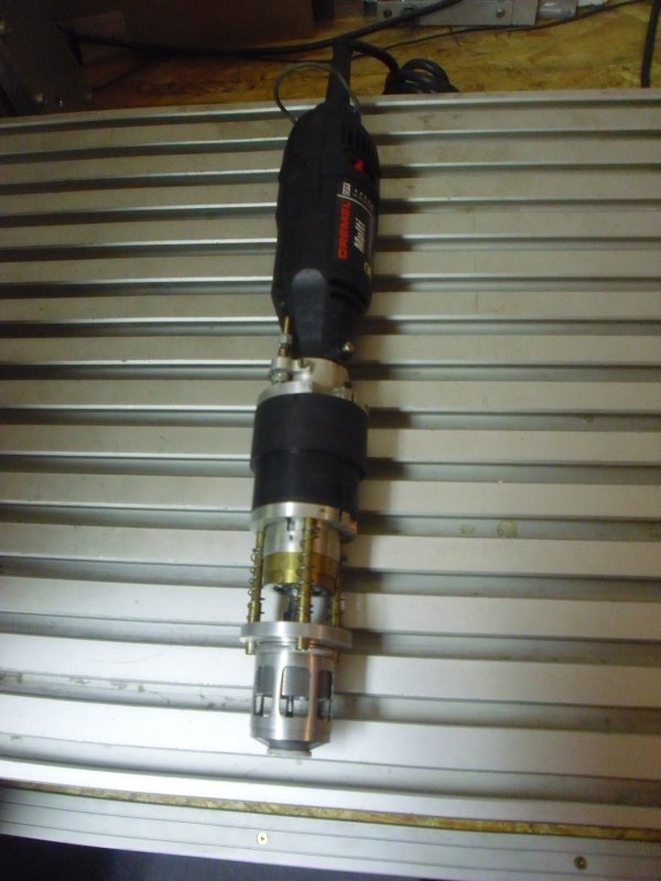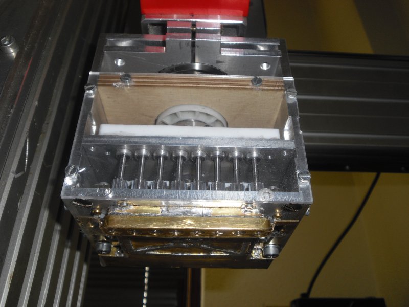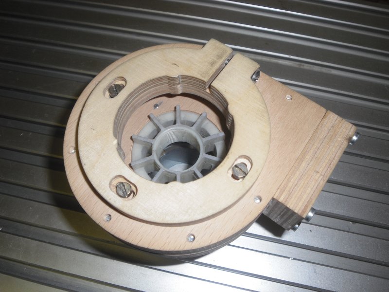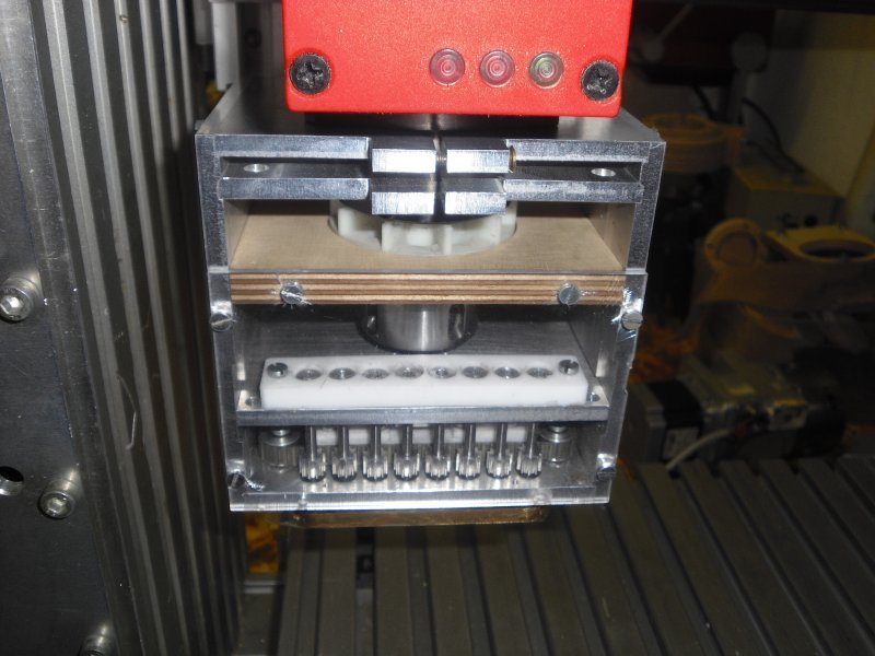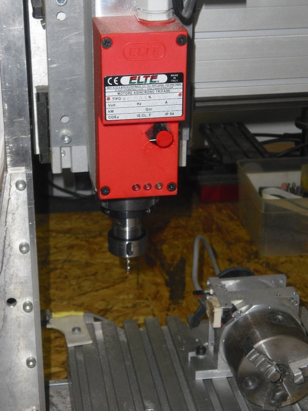 Die später hinzu gekommene A-Achse ist sehr hilfreich bei 3-D Teilen, da so 5 Seiten bearbeitet werden können. Die A-Achse ist aber hier nicht viel mehr als ein lagenprogrammierbarer Schraubstock.