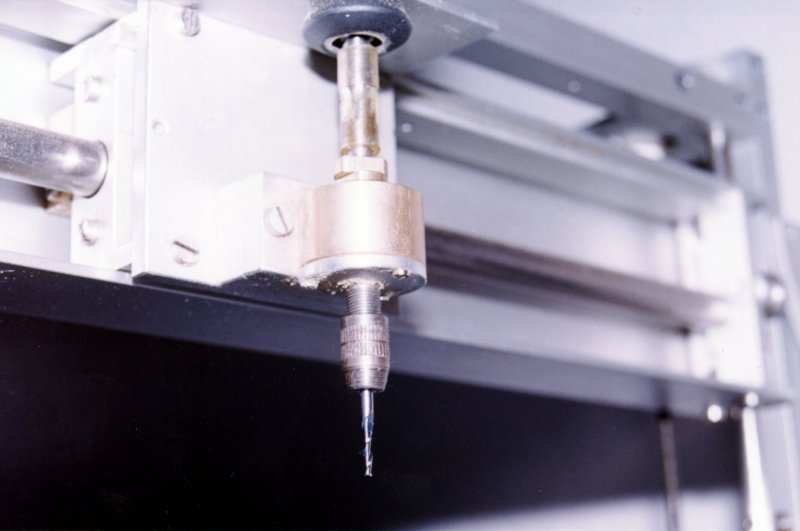 Mit dieser Maschine habe ich hauptsächlich Leiterplatten gebohrt, graviert und 2½-D Teile gefertigt. Für die steigenden Ansprüche der Werkstatt war die Maschine jedoch zu ungenau, zu langsam, zu klein, zu instabil, usw. Die Führungen waren zu klein bemessen und spielbehaftet, ebenso wie die Gewindemuttern. Diese waren zwar radial geschlitzt und einstellbar, jedoch war der Kompromiss zwischen Spiel und Drehmoment schwer zu finden. Also entschied ich mich, eine neue Maschine zu konstruieren und zu bauen. Diesmal richtig!